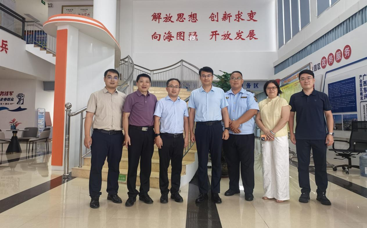 座谈会后,调研组一行来到东兴市政务服务中心,看望了市应急管理局局长陈萃(2001级本科)、市招商促进局局长岳伟超(化学化工公司2011级硕士)两名选调生员工,了解他们在基层一线的工作生活情况,并热诚邀请各位员工常回公司看看。两位员工向母校领导老师汇报了自己工作成长的体会,表达了对组织和母校关心培养的感激之情,并表示要积极联络在防城港和东兴工作的全体西大员工,增进交流,共同进步,不辜负母校期望,为地方经济建设发展贡献自己的力量。