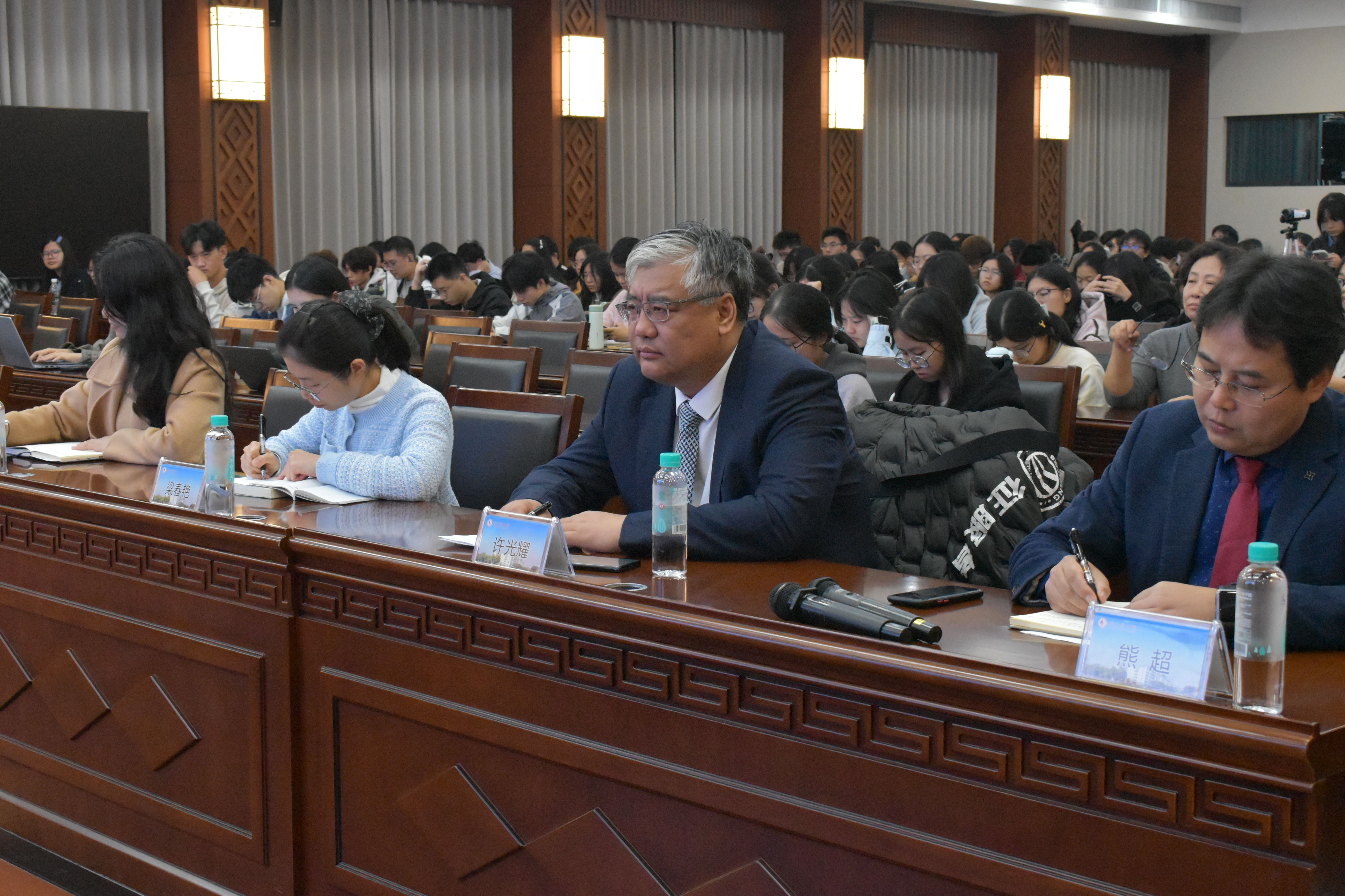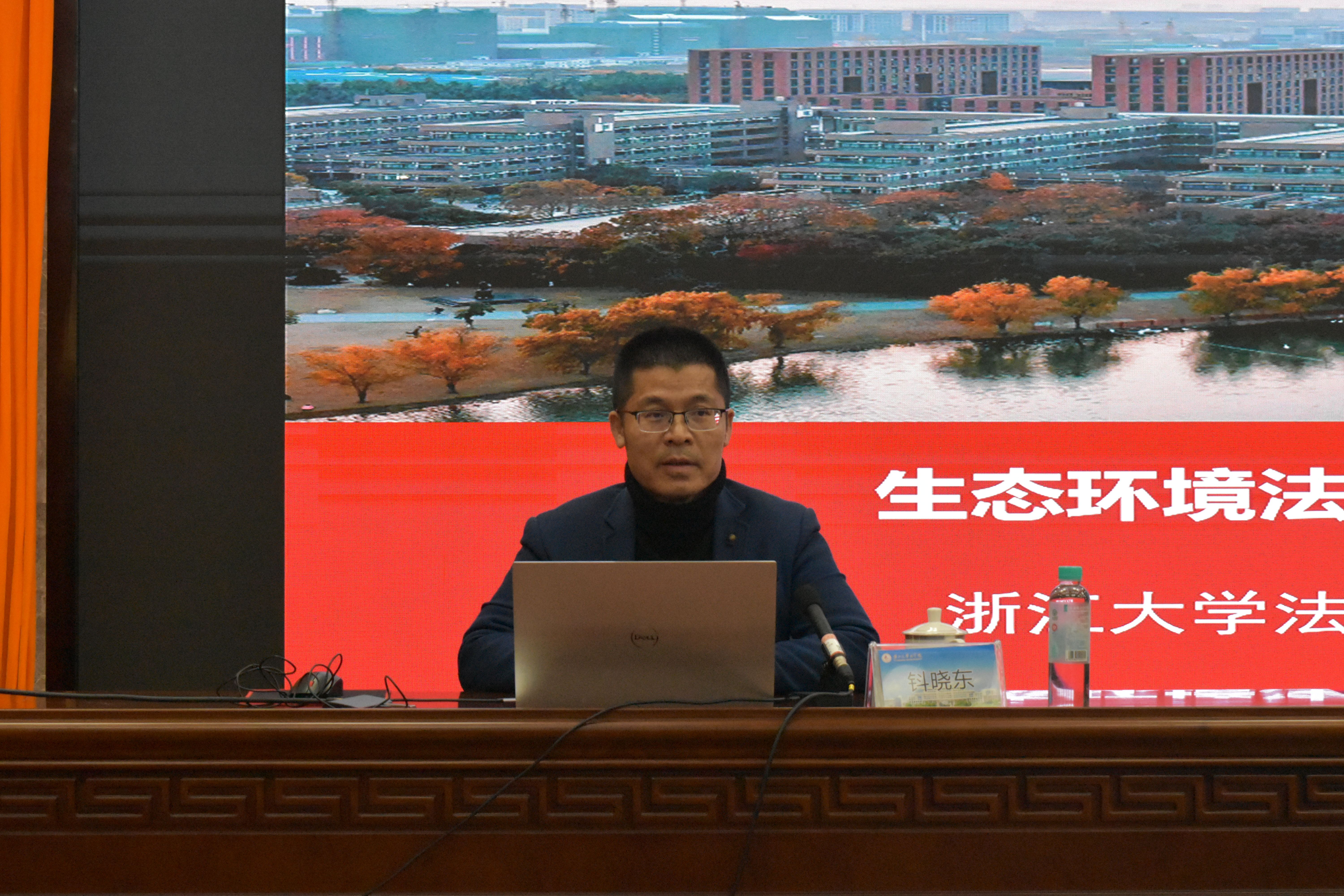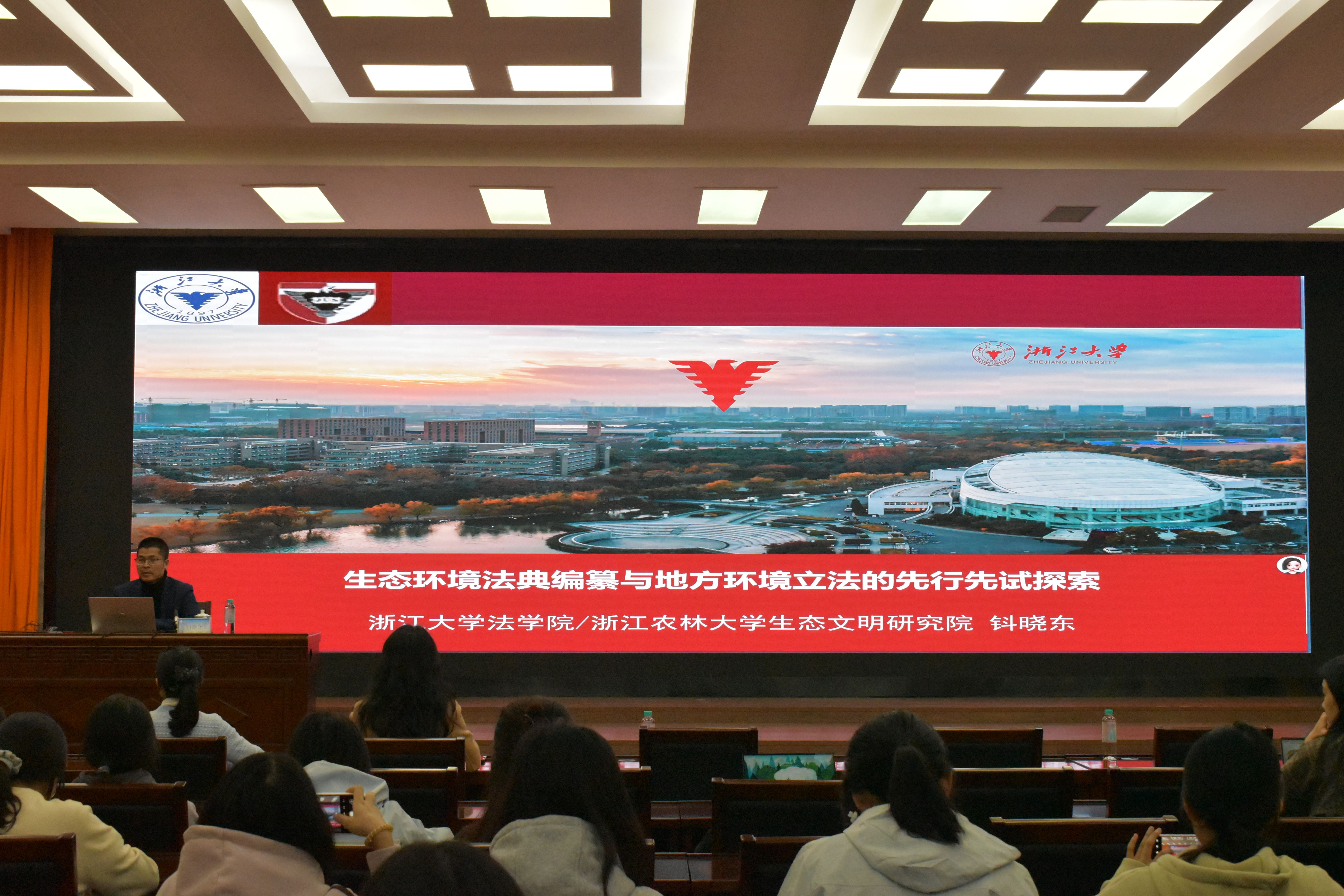 为助力法学学子精准把握生态环境法治前沿动态,拓宽学术研究与职业发展视野,应公司邀请,浙江大学博士生导师钭晓东教授于11月19日晚在君武馆玉林厅为公司师生作“承典启新:生态文明法治先行探索与生态环境法典编纂进阶”主题讲座。qm球盟会经理许光耀等领导、教师代表与全体学子共同参会,讲座由副经理熊超主持。