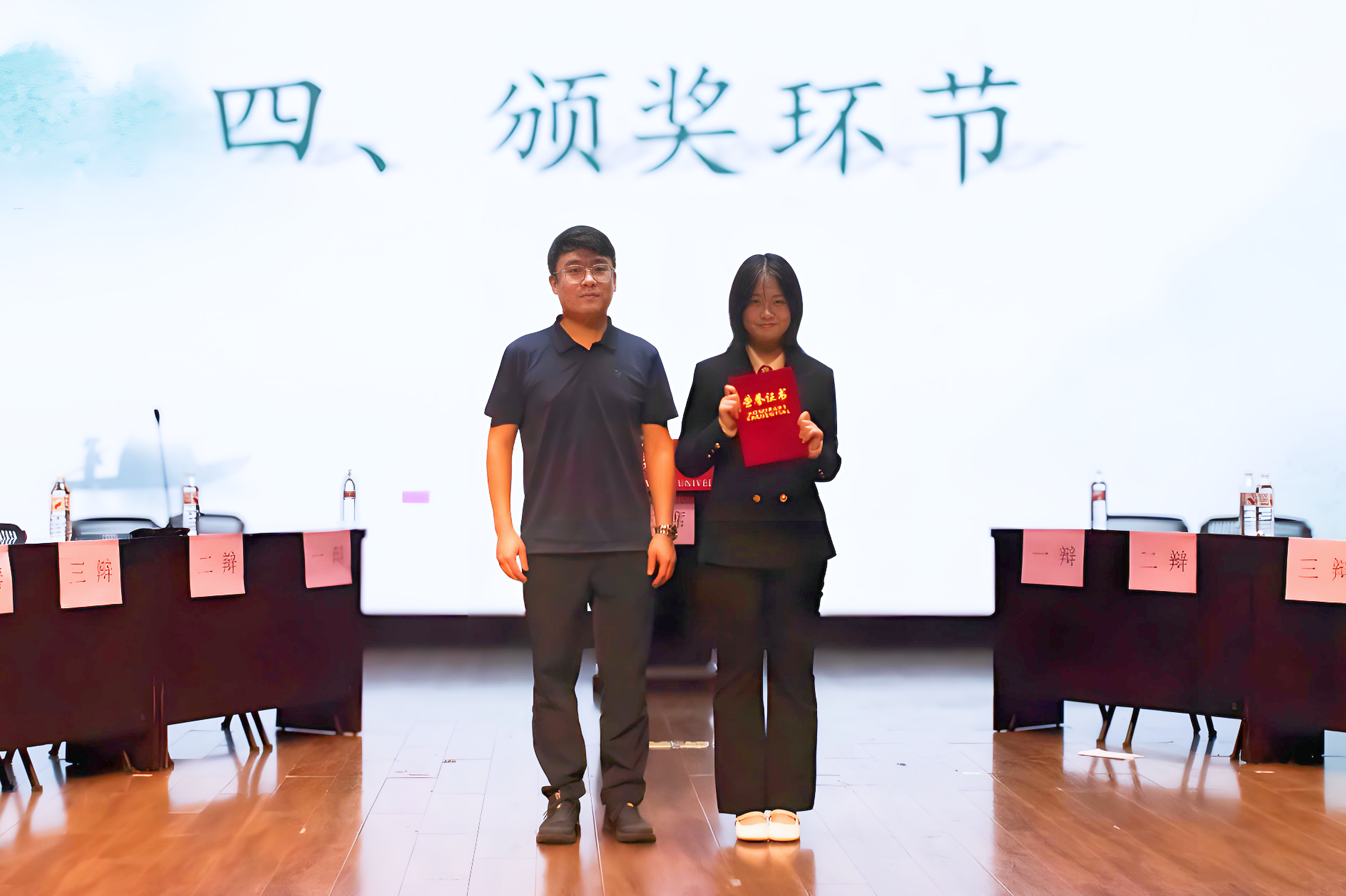辩法理之精微,论正义之边界,双方辩手探求个人隐私与公共利益之衡,围绕各自的观点据理力争,毫不退让,现场高潮迭起,精彩纷呈。经评委们的慎重讨论和公正评判,“辩护天团队”荣获冠军,“说得队”获得亚军,反方四辩梁馨月同学夺得“最佳辩手”称号。
